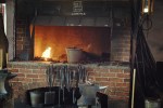 After meeting Hub, we traveled up the hill – getting distracted by the The Smithy where a blacksmith demonstration was taking place. We popped in there to see a man slaving over the heat on this humid day. The most interesting part of the exhibit was the huge bellows by the fire to deliver more air to the fire.